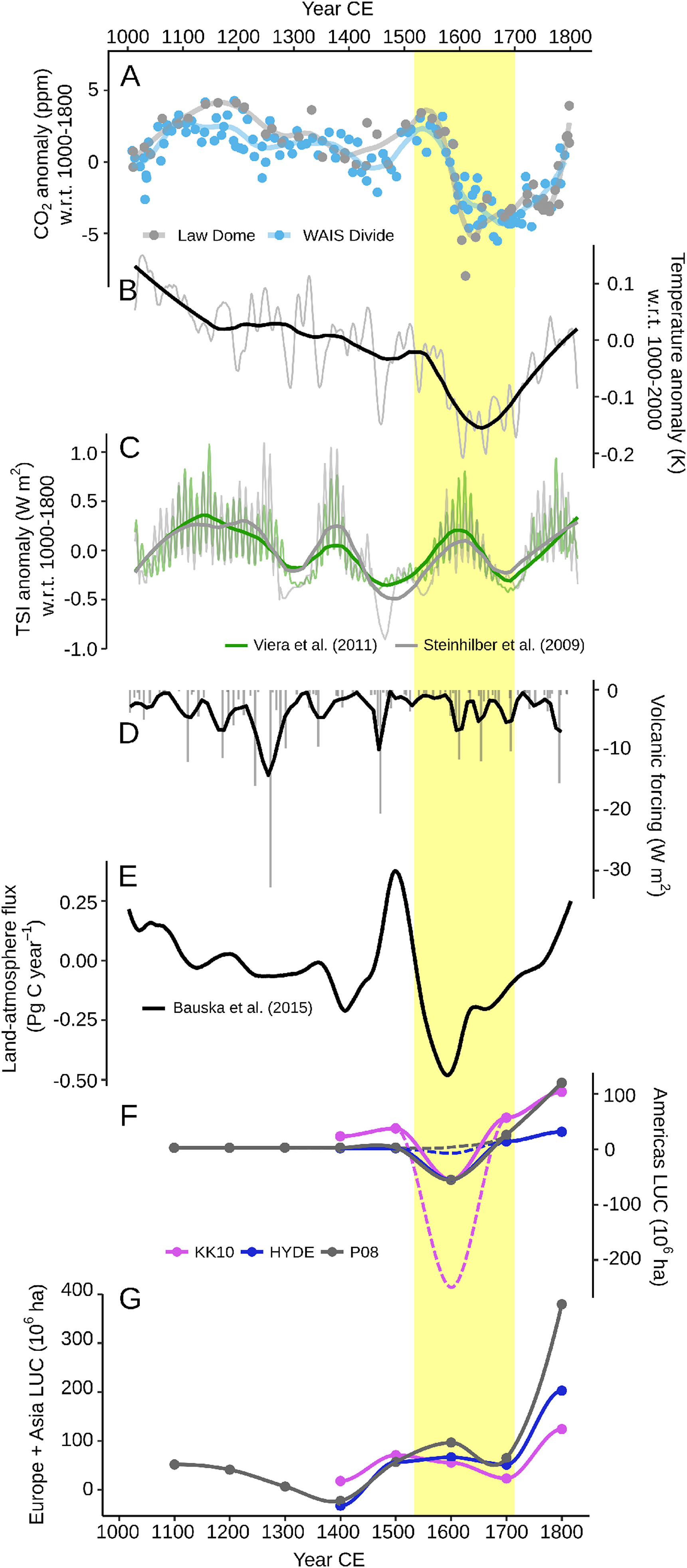 - 1610 atmospheric CO2 drop partly caused by indigenous depopulation of the Americas