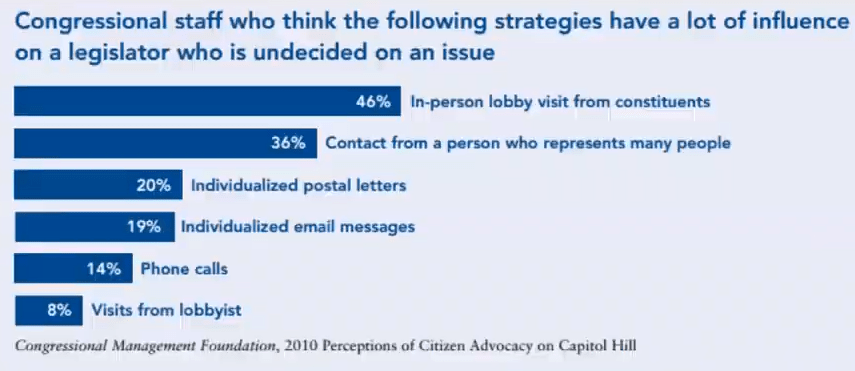 In-person lobbying is considered the most effect strategy to influence a legislator. The following steps can help make your visit successful.