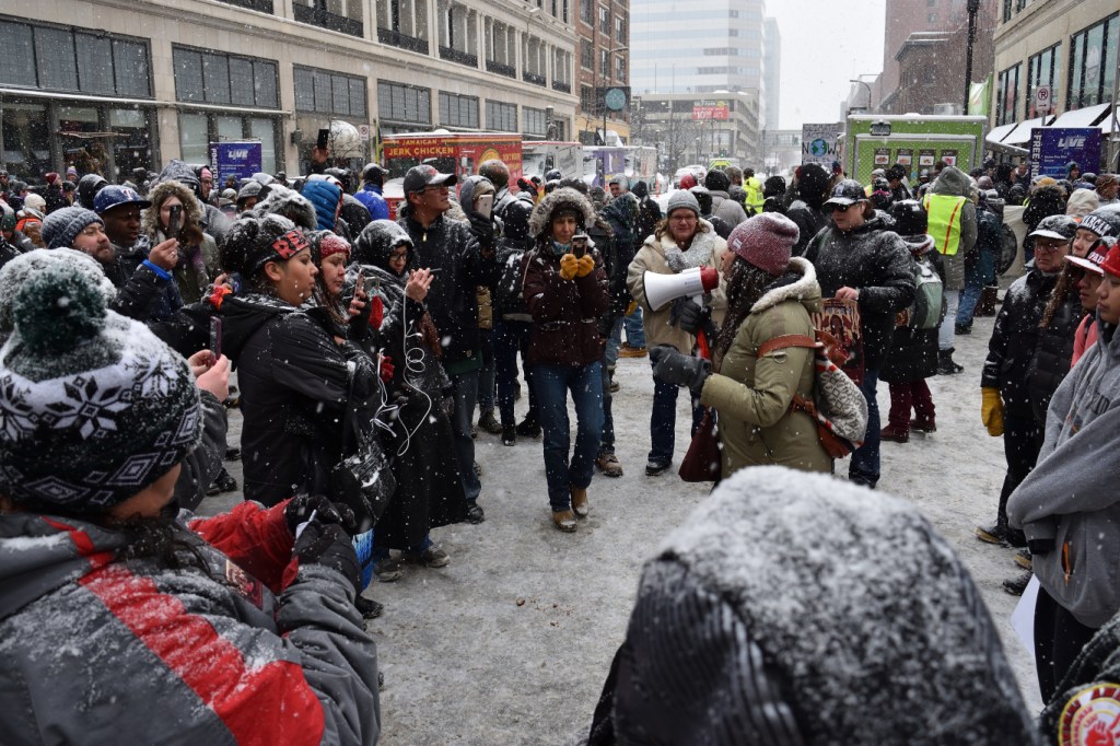 In February, 2018, Christine Nobiss and Donnielle Wanatee both spoke about missing and murdered indigenous women (MMIW) when we were in Minneapolis demonstrating against US Bank’s funding of fossil fuel projects.
