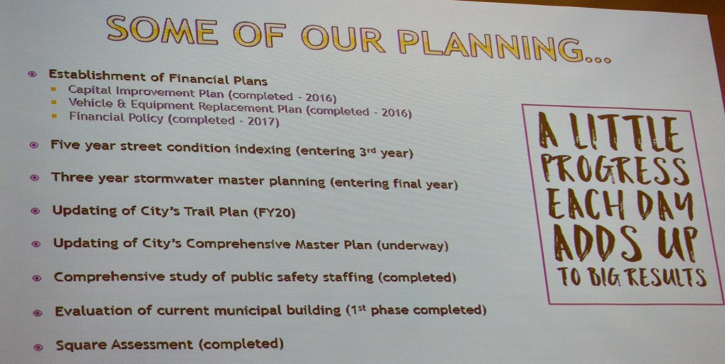 Ryan Waller, Indianola’s City Manager, spoke about a few of the many things the city is doing to build vibrant and sustainable communities. He focused on two things, evaluation of municipal buildings and services, and the downtown square assessment and plans.