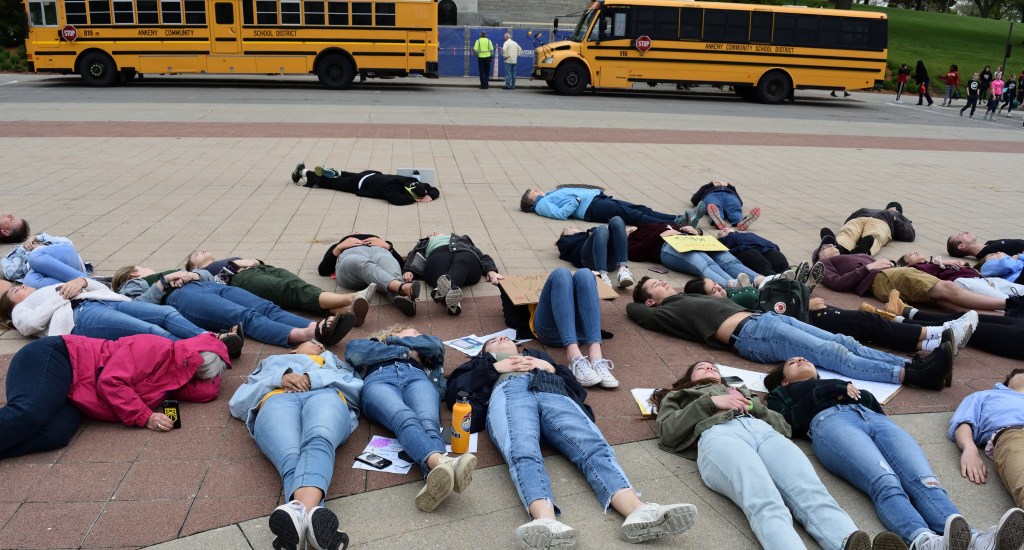 Today a group of around 50 students from Des Moines, Iowa, schools gathered at the state capitol building, striking for climate change. A large number of the students spoke about how urgent climate change is, sharing stories of how this affects them personally.