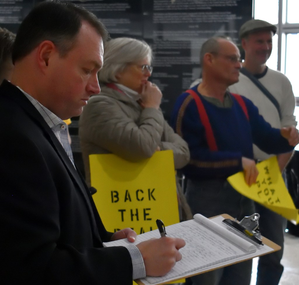 Shawn Sebastian did an excellent job of laying out the principles of a Green New Deal. He said if you believe the scientific consensus, you know we have just 11 years of intense work to do if we are going to avoid climate catastrophe. You know there is no time for incremental measures. Politicians who talk about a gradual approach can not be supported.