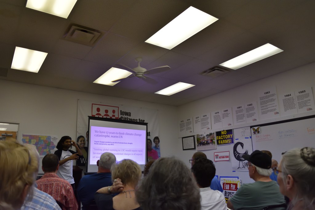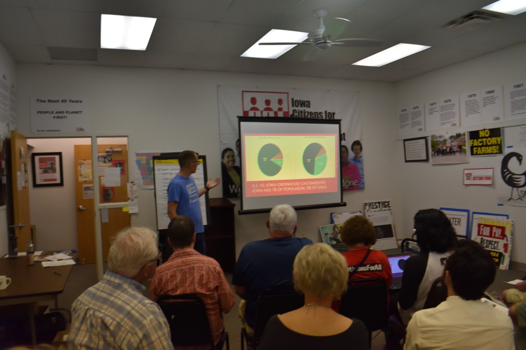 Last night I attended the Green New Deal Strategy Session: Fighting On Iowa’s Frontlines at Iowa Citizens for Community Improvement (ICCI). I have heard good things about ICCI for years. My aunt and uncle have reported to our Quaker meeting about ICCI’s work to protect Iowa’s water from the waste from factory farms.