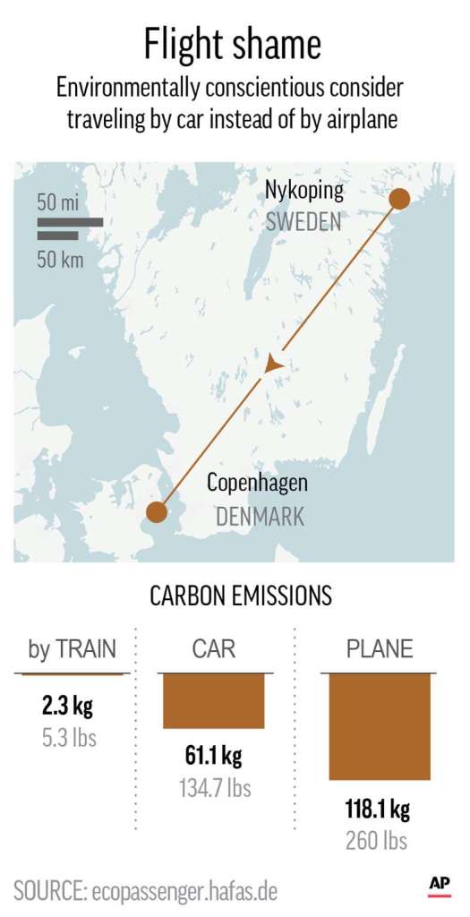 Swedish lawyer Pia Bjorstrand and her family board the first of many trains on a vacation around northern Europe. They are part of a growing movement that’s shunning air travel because it produces high levels of greenhouse gas emissions. AP