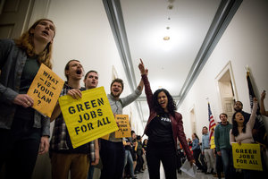 Washington, DC. USA. 12.10.18- Hundreds of young people occupy Representative offices to pressure the new Congress to support a committee for a Green New Deal.