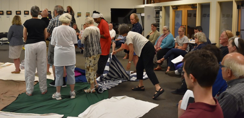 At the conclusion of the “rug” exercise, people are invited to share how they felt about the experience.