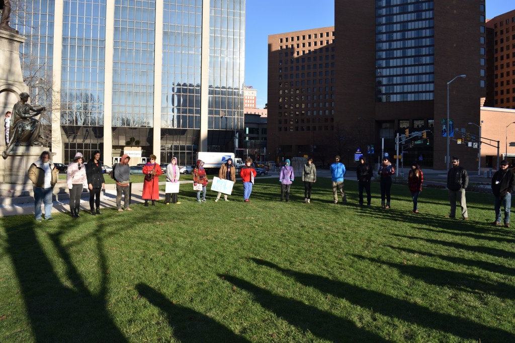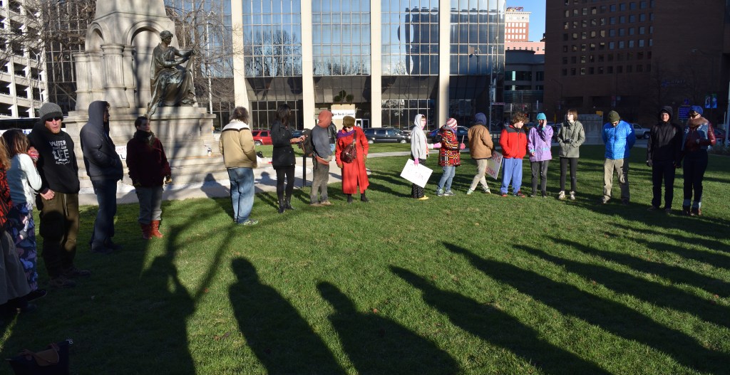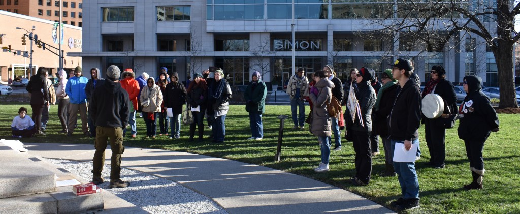 As water protectors, prayer was an important part of our gatherings in Indianapolis. One time we gathered on the Indiana State Capitol grounds just to give thanks and pray together. The photos and video below, including me speaking about the Keystone Pledge of Resistance, were from that occasion.