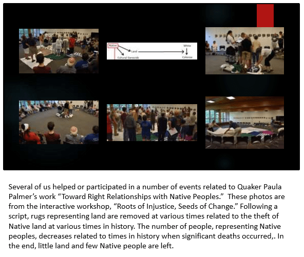 I was glad to come across a series of articles from the American Friends Service Committee (AFSC) that discuss decolonization so you can hear about this from someone else. Denise Altvater serves as Coordinator as the Wabanaki Youth Program in Maine. She has created a supportive web of connection and communication in a region where Native Communities have been isolated and abused. With her leadership, the American Friends Service Committee’s Wabanaki Program (Maine) was instrumental in developing the first Truth and Reconciliation commission between a sovereign Tribal nation and a U.S. state and she recently has become focused on offering decolonization workshops for faith communities.