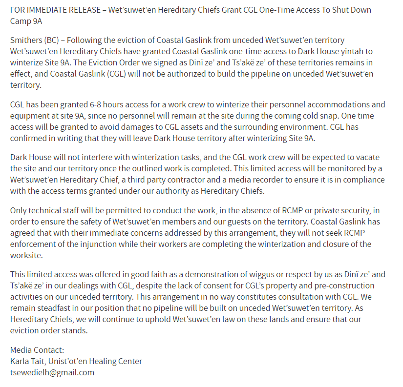 eviction notice from the Unist’ot’en