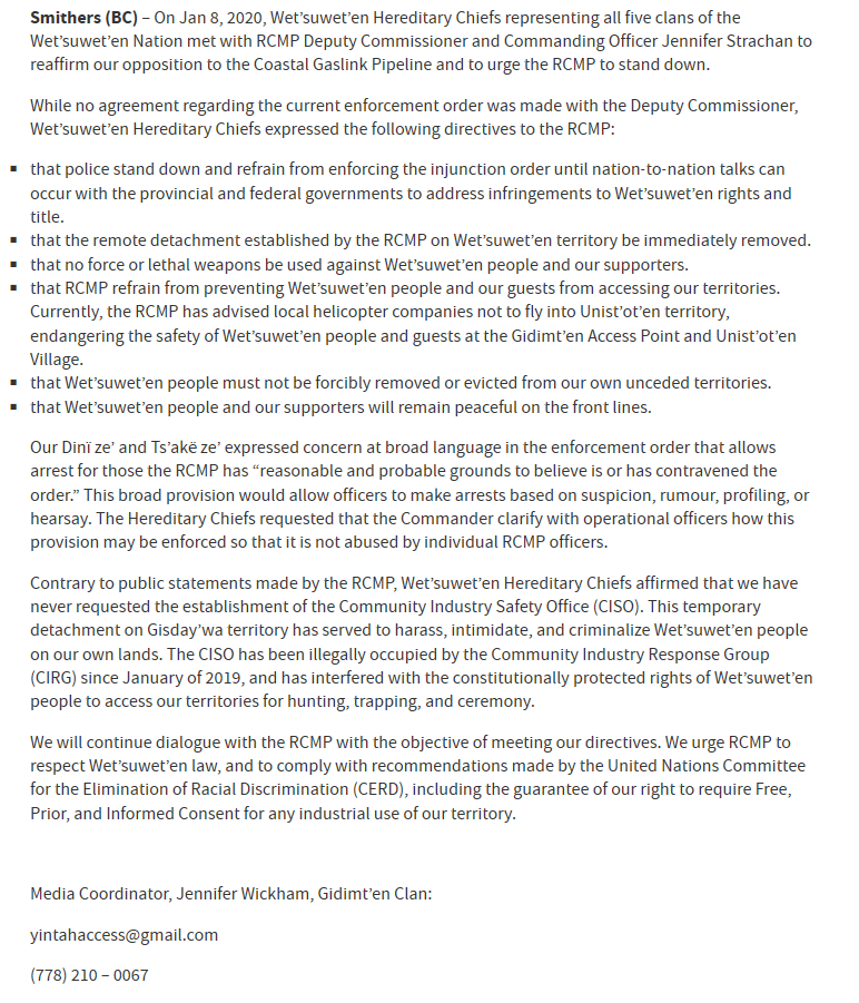 Hereditary First Nation chiefs issue eviction notice to Coastal GasLink contractors. TC Energy says it signed agreements with all 20 elected First Nations councils along pipeline’s path. Joel Dryden · CBC News · Posted: Jan 05, 2020