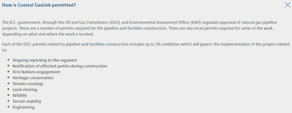 I’m trying to learn about this conflict between the Wet’suwet’en Hereditary Chiefs and the Coastal GasLink Pipeline Project. According to the news article below, some chiefs agreed to the pipeline project. But the Hereditary Chiefs say those chiefs did not have the authority to do that. At the end of this are statements by the Coastal GasLink company.