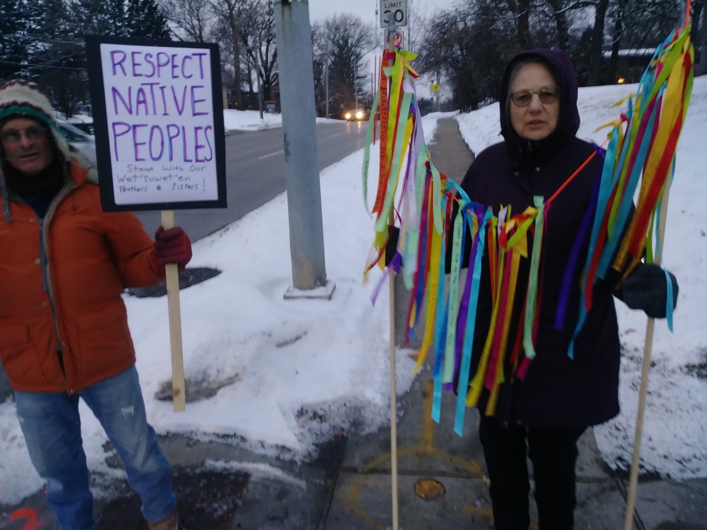 Iowa Quakers and others held a vigil in support of the Wet’suwet’en people, Feb. 7, 2020, Des Moines, Iowa