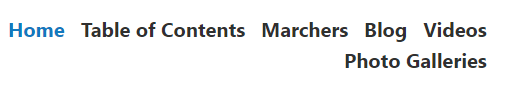 The main menu consists of a Table of Contents of all the blog posts, a Marchers link to the photo and biographies of the Marchers, the Blog link is a way to scroll through the blog posts, and the Videos and Photo Galleries have their own sections.