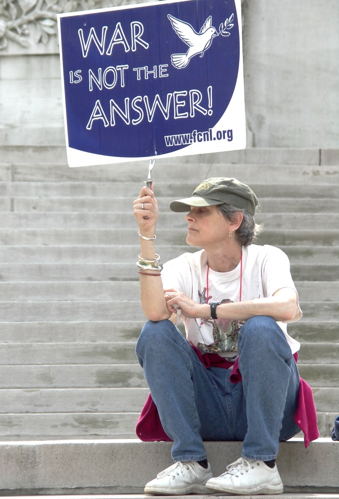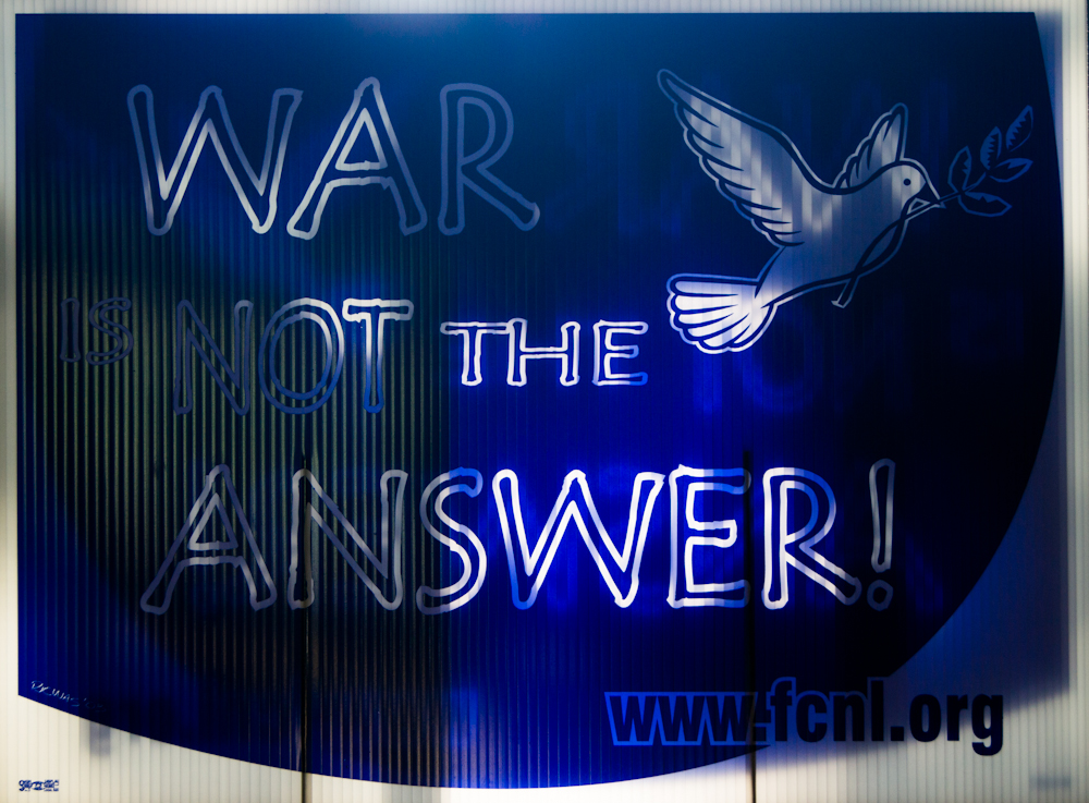 “War is Not the Answer” is a campaign of the Friends Committee on National Legislation (FCNL) to encourage people to consider alternatives to armed conflict. I have worn the button on my camera strap for many years. Those who know me know I carry my camera (almost) everywhere.