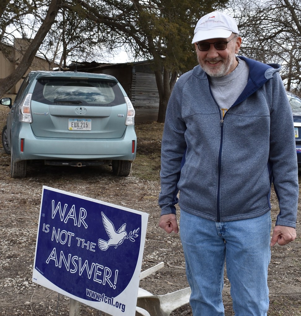 FCNL collects photos people send them of the War is Not the Answer signs. On the Moratorium Against the War in Vietnam on October 15, 1969, the entire student body of Scattergood Friends School, where I was a Senior at the time, marched in silence from the School to the University of Iowa, a distance of about 12 miles, to participate in the anti war activities there. This was before the War is Not the Answer signs. In 2012 another peace march occurred from the School into Iowa City. FCNL published these combined photos.