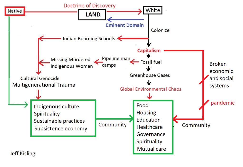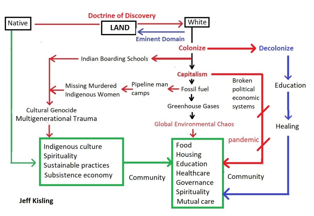 Updating the previous model (above) I see the new path Decolonize. As best I know now, that path first requires education, such as offered from the previous resources, and healing. Both are large topics to be explored in future blog posts.