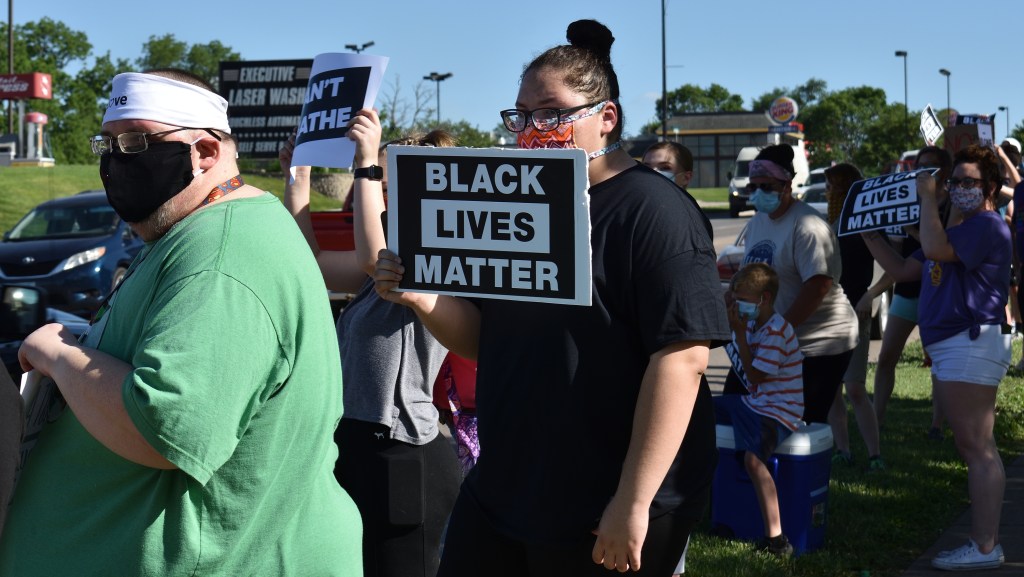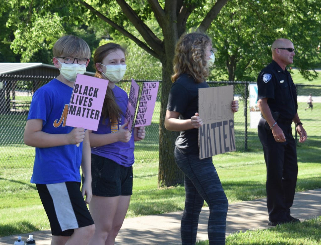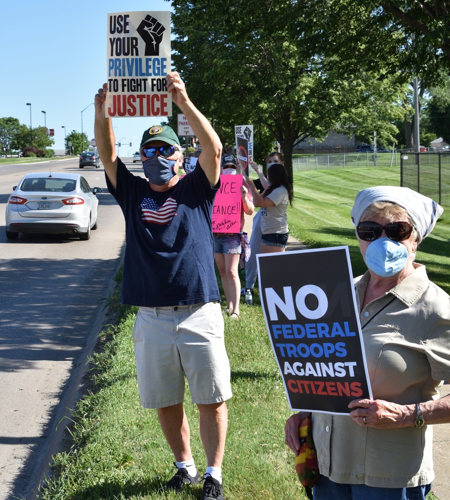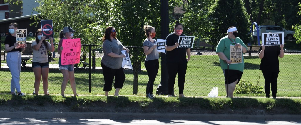 This evening nearly 100 of us gathered on the streets of Indianola, Iowa. Organized by Indivisible Warren County. Indianola has a population of almost 17,000, 0.10% of whom are black.