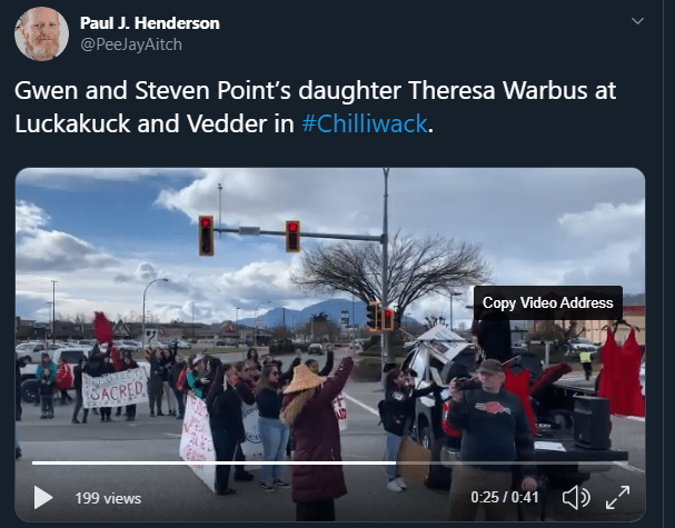 [ WARNING: This video contains graphic images of an armed threat on the lives of land defenders Denzel Sutherland-Wilson (Gitxsan) and Anne Spice (Tlingit). It may be traumatic for many to see. But we feel strongly that it should be available to witness. Denzel, Anne, and all the land defenders are now safe. These events took place during the RCMP raid on unceded Wet’suwet’en territory on February 7, 2020. The video was filmed by Gitxsan land defender Denzel Sutherland-Wilson from atop this tower. ]