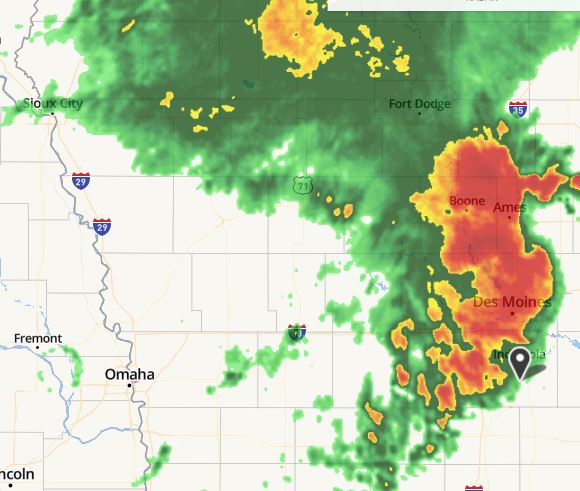 The reason for writing about exhilaration today is related to the powerful derecho yesterday. As you might guess, I was running when it hit. I checked the weather radar before I began to run, since I’d heard there would be thunderstorms later. I could see the storm in western Iowa, and would have had plenty of time to finish my run before it arrived.