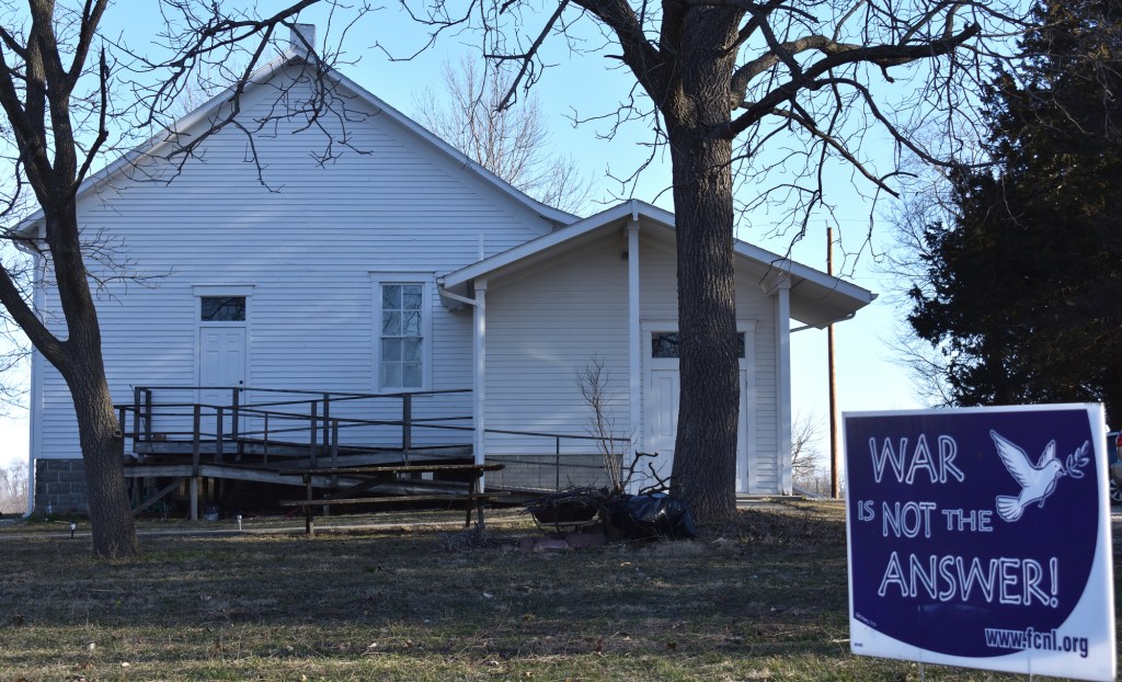 I am an Iowa native—actually a Des Moines native. I grew up attending Knox Presbyterian Church just two miles from the Des Moines Valley Friends (DMVF) Meeting House. Although Presbyterian Churches are not typically known as “peace churches”, Knox Presbyterian was an active peace church. While never having to officially declare himself a conscientious objector during WWII (due to his status as a pastor), our minister, Reverend Keith Delap, was a true follower of the peace testimony.