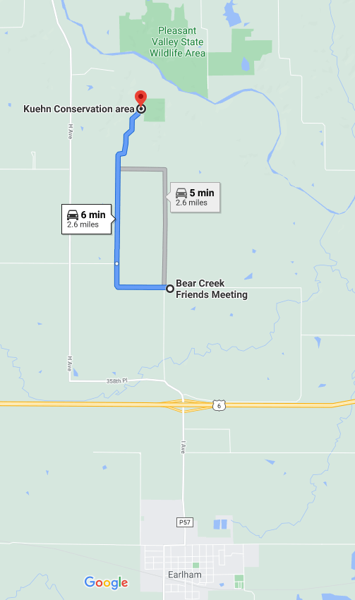 Yesterday my Quaker Meeting, Bear Creek Friends of Iowa Yearly Meeting (Conservative), discussed the meeting’s long history of connection with Prairie Awakening/Prairie Awoke. This ceremony is held annually at the Kuehn Conservation Area, just a few miles from the meetinghouse in rural Iowa.