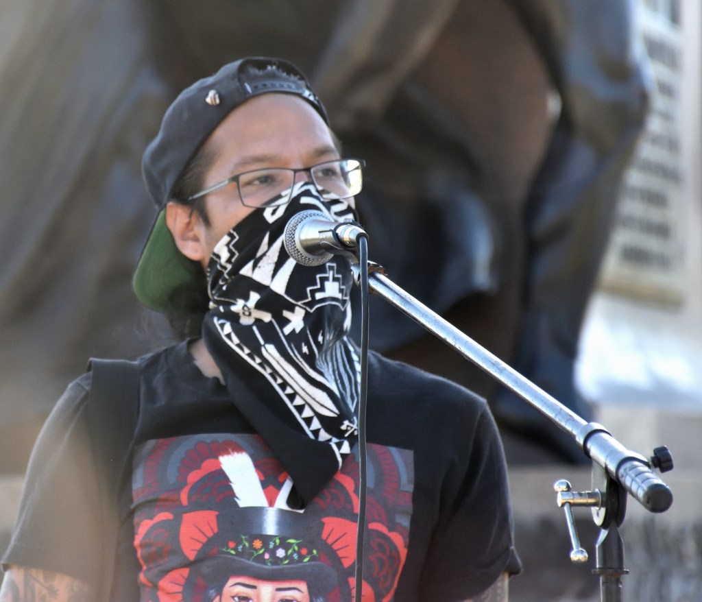 Activists called for the removal of statues and for Columbus Day to no longer be recognized in Iowa at an Indigenous Peoples’ Day celebration at the Iowa State Capitol Monday.