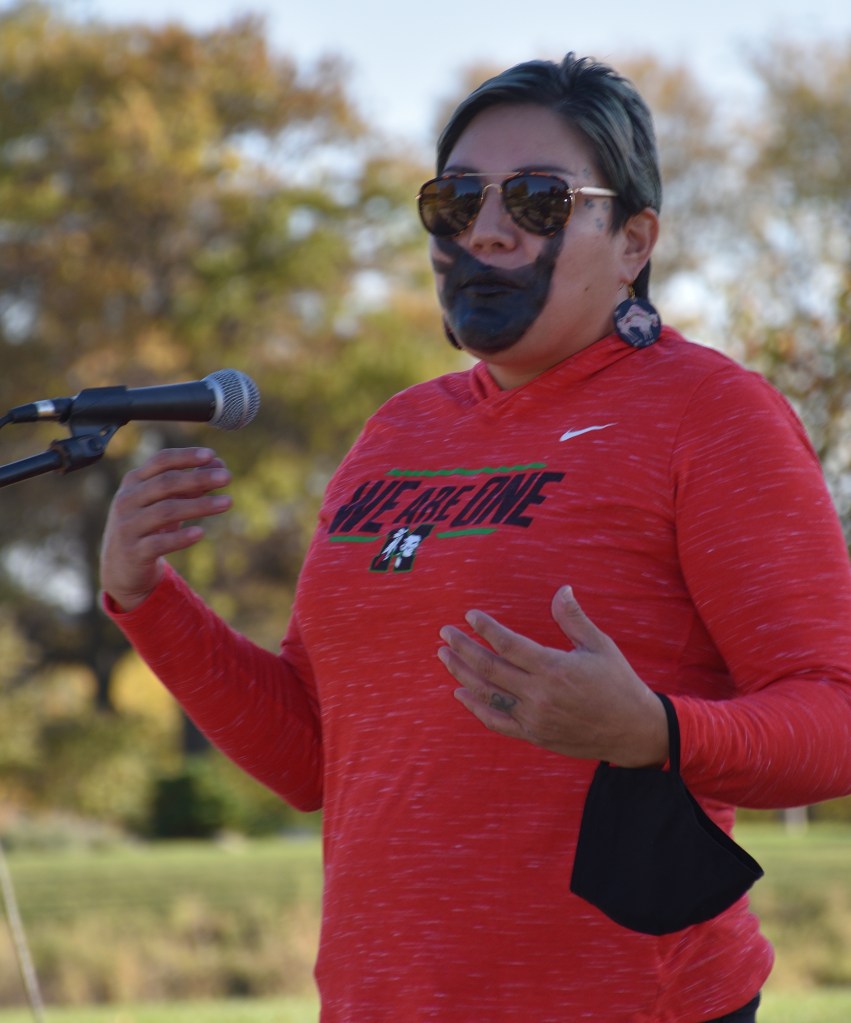 Great Plains Action Society, Iowa CCI and Des Moines Mutual Aid hosted the celebration, where Indigenous activists spoke and shared music celebrating the holiday. But Christine Nobiss, aka Sikowis, who is Plains Cree-Saulteaux, said the event was also “a resistance.”