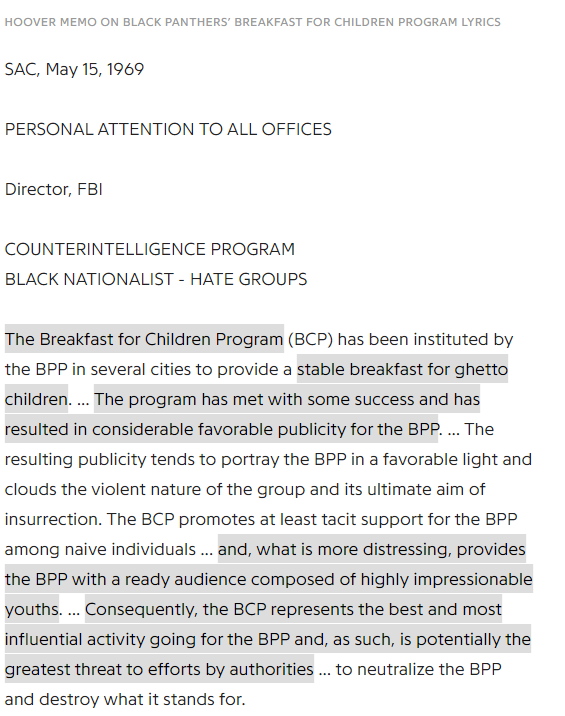 Mutual Aid always involves action. The Black Panther’s free breakfast program drew in large numbers of people to help and fed thousands of children. The photographs of this are remarkable, showing everyone clearly enjoying what they were doing. FBI Director J Edgar Hoover recognized how effective the Breakfast for Children Program was.