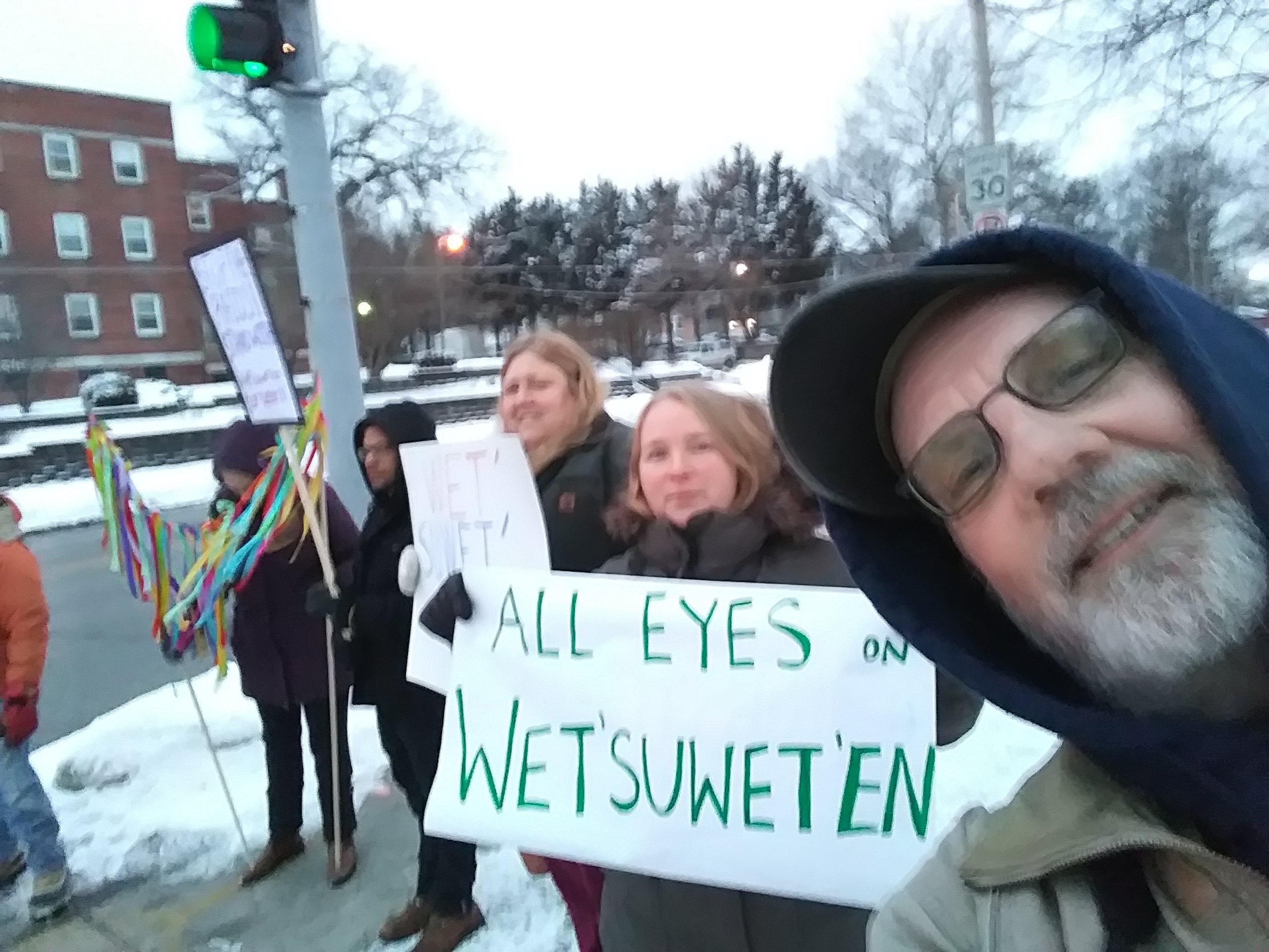 It was at a vigil last February, supporting the Wet’suwet’en peoples (referred to in the statement below) that I met Ronnie James, who works at the Great Plains Action Society and Des Moines Mutual Aid. That meeting changed my life since as I began to learn about Mutual Aid. And participate in Des Moines Mutual Aid’s food giveaway.