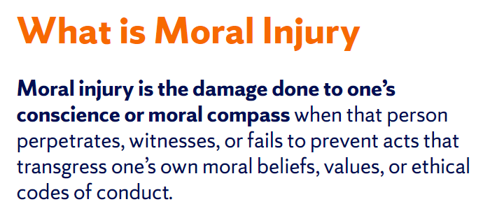 Spirituality is related to moral beliefs and values, and thus related to moral injury. Thus the concept of soul repair.