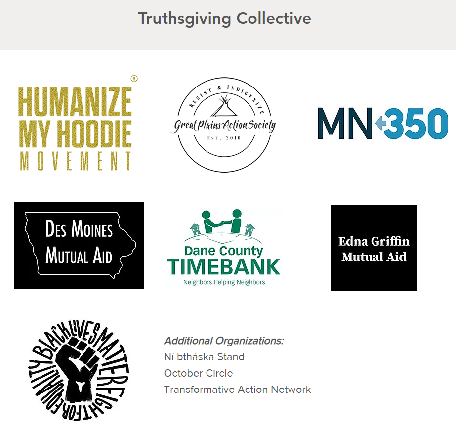 Truthsgiving is an ideology that must be enacted through truth telling and mutual aid to discourage colonized ideas about the thanksgiving mythology—not a name switch so we can keep doing the same thing. It’s about telling and doing the truth on this day so we can stop dangerous stereotypes and whitewashed history from continuing to harm Indigenous lands and Peoples, as well as Black, Latinx, Asian-American and all oppressed folks on Turtle Island.