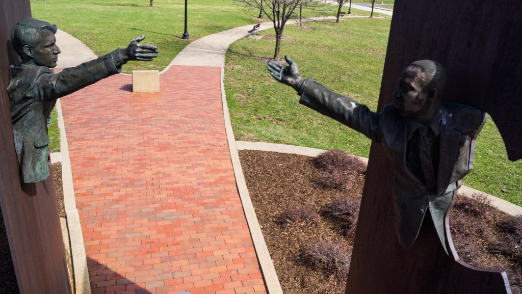 After speaking about racism at Ball State, an African American student said, “Your speech implies that you are placing a great deal of faith in white America. Is that faith justified?” Kennedy answered “Yes” and added that “faith in black America is justified, too” although, he said, there “are extremists on both sides.” Before boarding a plane to fly to Indianapolis, Kennedy learned that Martin Luther King, Jr. had been shot. On the plane, Kennedy told a reporter “You know, it grieves me. . . that I just told that kid this and then walk out and find that some white man has just shot their spiritual leader.”