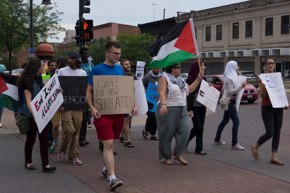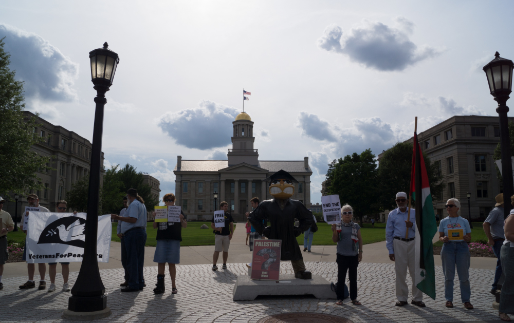 During annual sessions of Iowa Yearly Meeting (Conservative) that year (2014), Christine Ashley, then the head of Scattergood Friends School, organized a trip that took the Peace and Social Concerns Committee to Iowa City to attend a vigil to call attention to the plight of Palestinians.