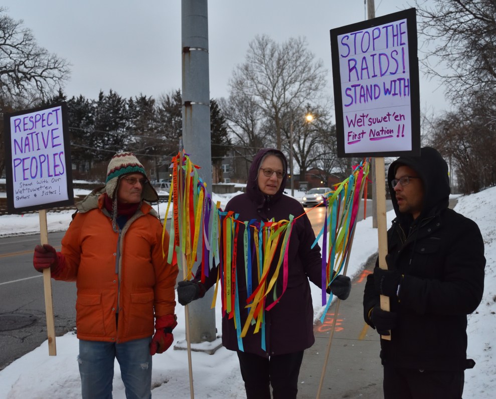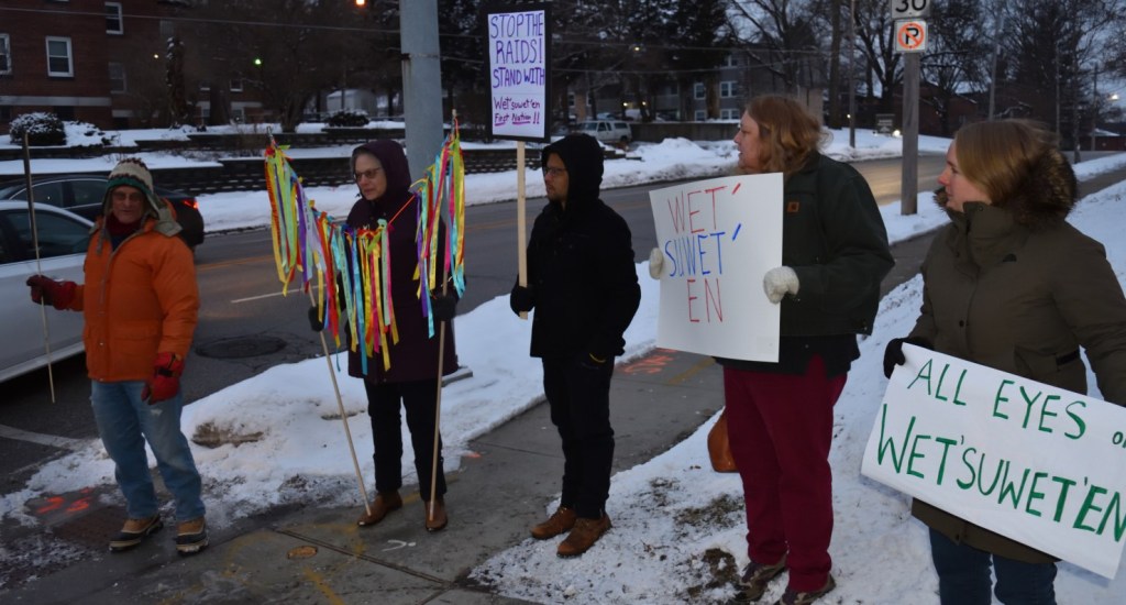Yesterday’s article also describes the Wet’suwet’en calls for solidarity from supporters. What could we do in Iowa? Iowa solidarity as RCMP invades Wet’sutwet’en