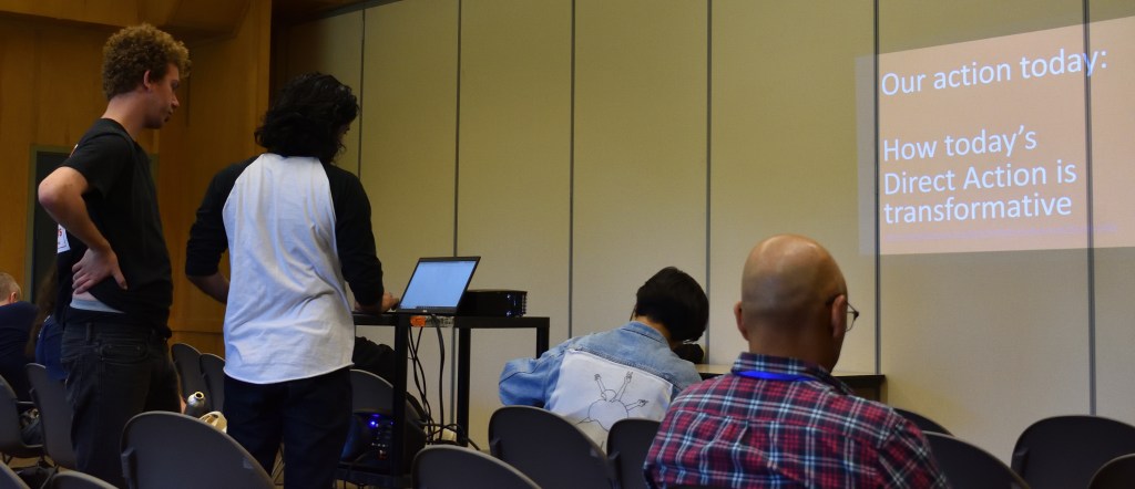 Several of the planned sessions I attended at the National Network Assembly related to direct action. I also participated in the unplanned event.