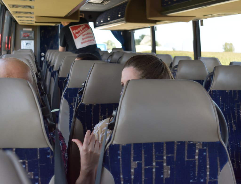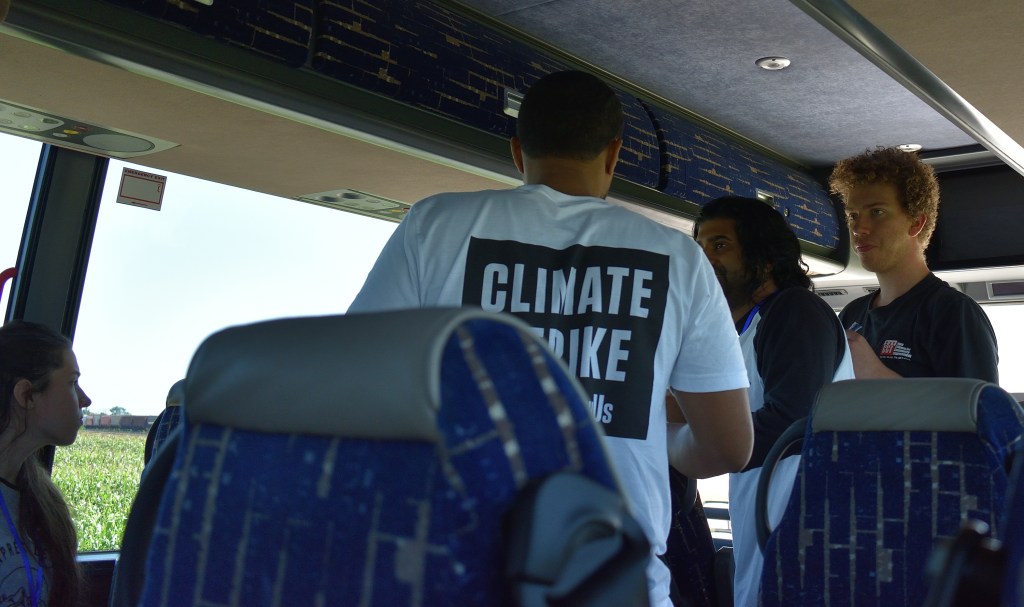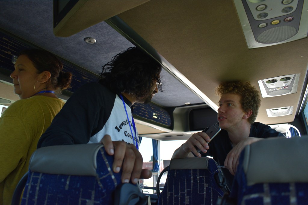 I had met Shawn previously because he is working at Iowa Citizens for Community Improvement (ICCI) in Des Moines. I had seen him at the Sunrise Movement Tour when it came to Des Moines. ICCI is the Sunrise Hub in central Iowa. I also saw him after that when there was a Sunrise Movement meeting at the ICCI offices.