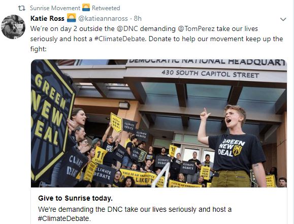 The @DNC refuses to host a #ClimateDebate. They've called the climate crisis a “single issue” while wildfires, floods and pollution devastate our homes. Apparently the DNC thinks a “single issue” means “an issue not affecting me.”